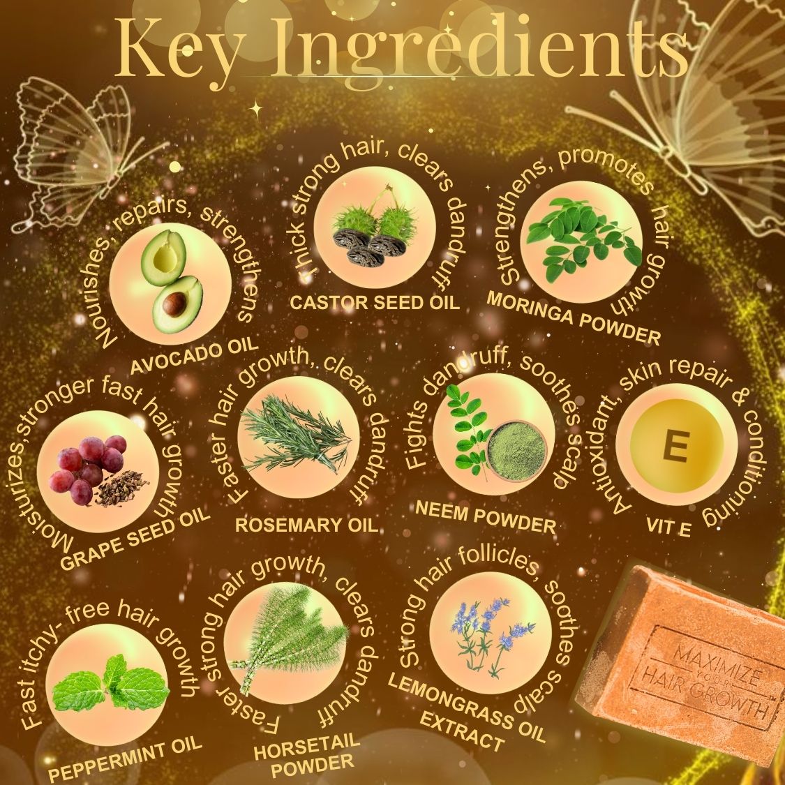Benefits include hydration, scalp soothing, and dandruff fighting properties. Suitable for all hair types, safe for babies, parabens, and sulfates. Handmade with natural ingredients, follow instructions for best results. Share the love on social media!